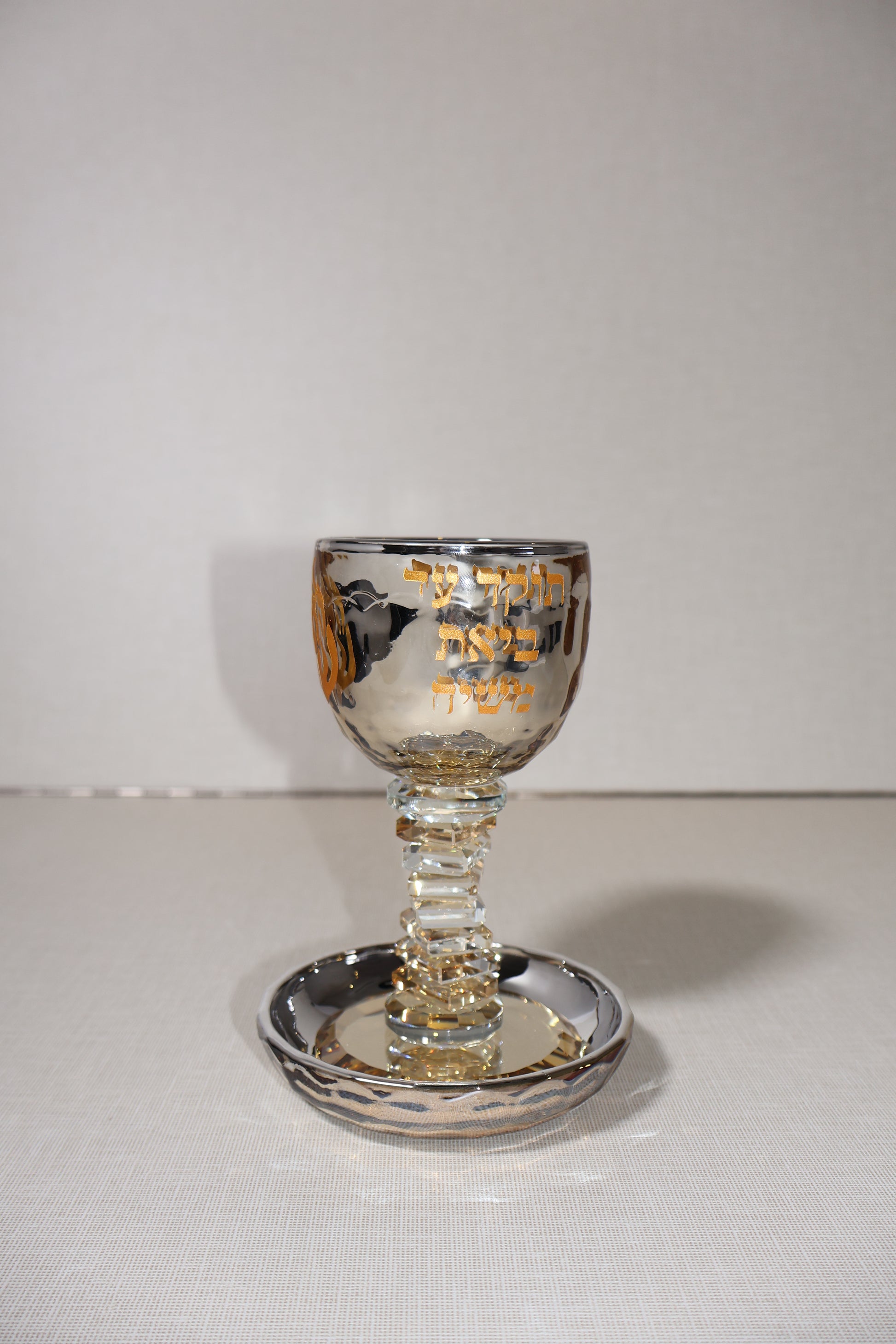 גביע קידוש קריסטל שמפנייה – דגם רגל קריסטל "תוקד עד ביאת המשיח"