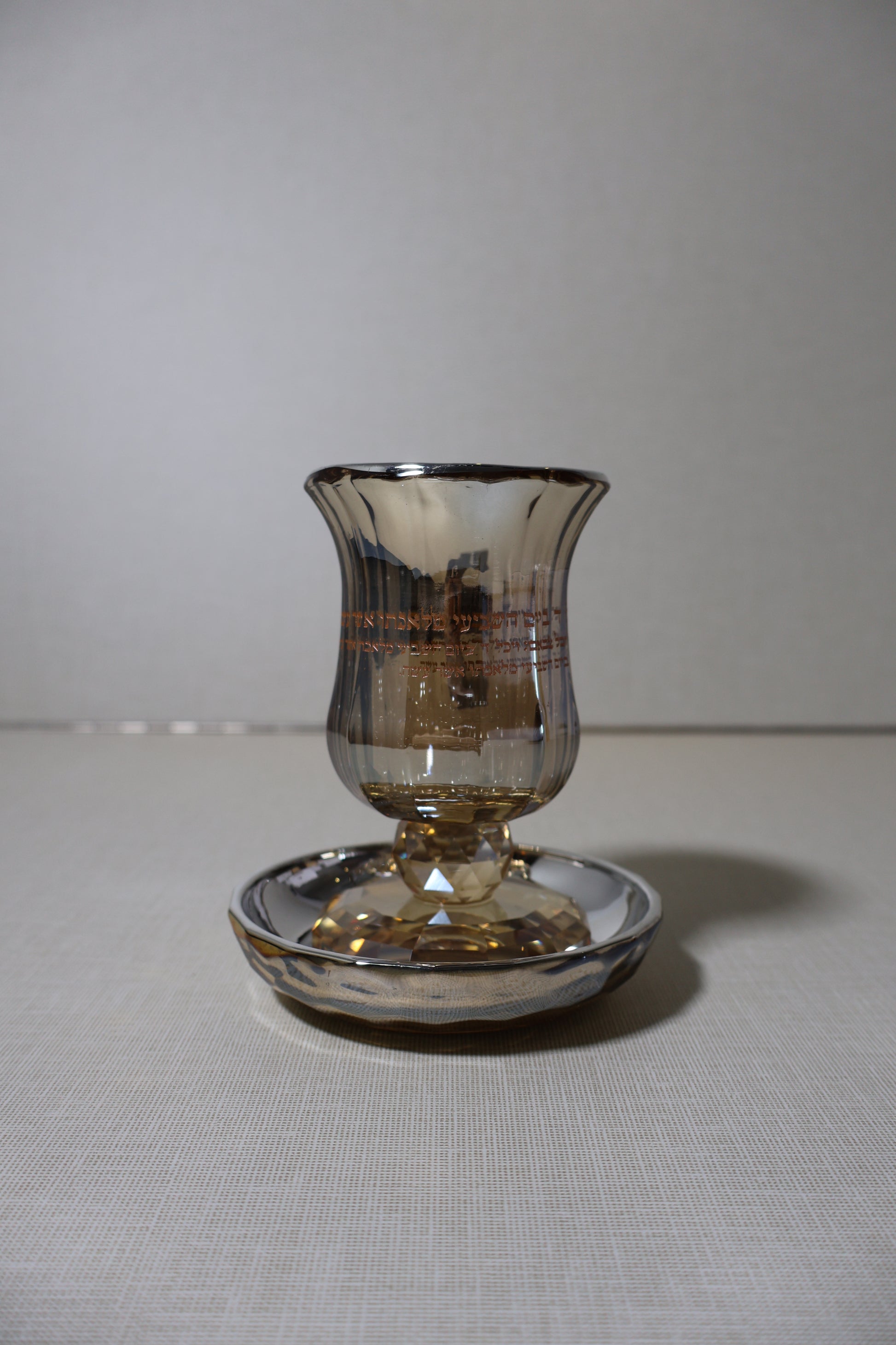 גביע קריסטל מהודר בגוון שמפנייה , עם רגל בינונית בעיצוב אלגנטית וחריטת זהב של "יום השישי" .