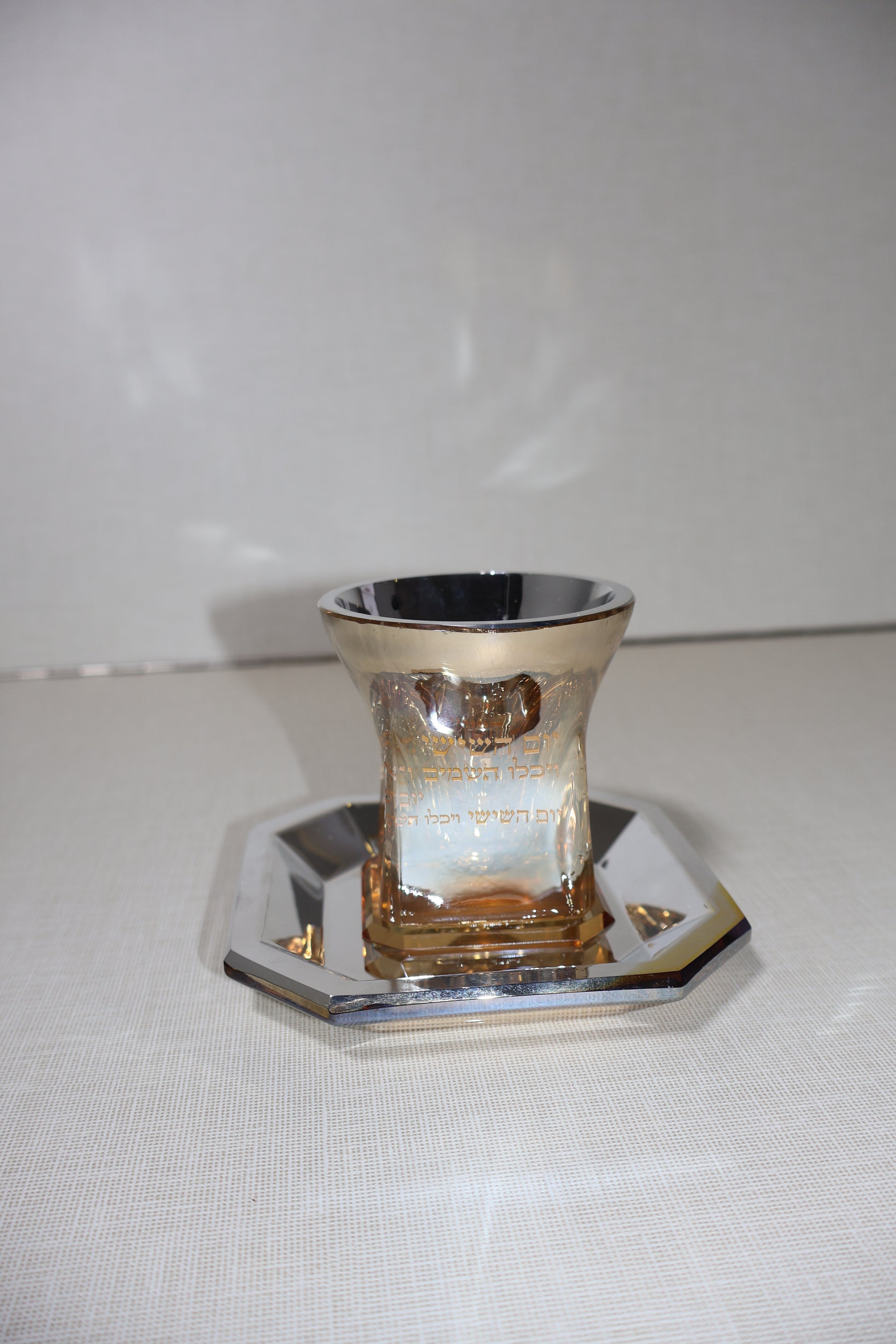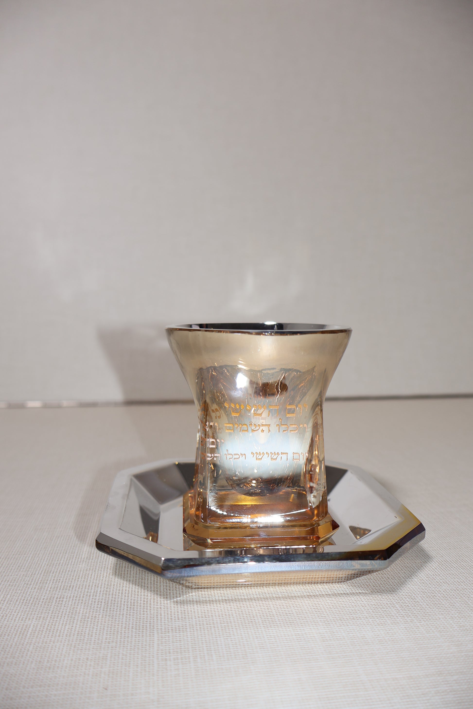 גביע קריסטל יוקרתי בגוון שמפנייה , עם בסיס מרובע אלגנטי וחריטת ברכת "יום השישי" .