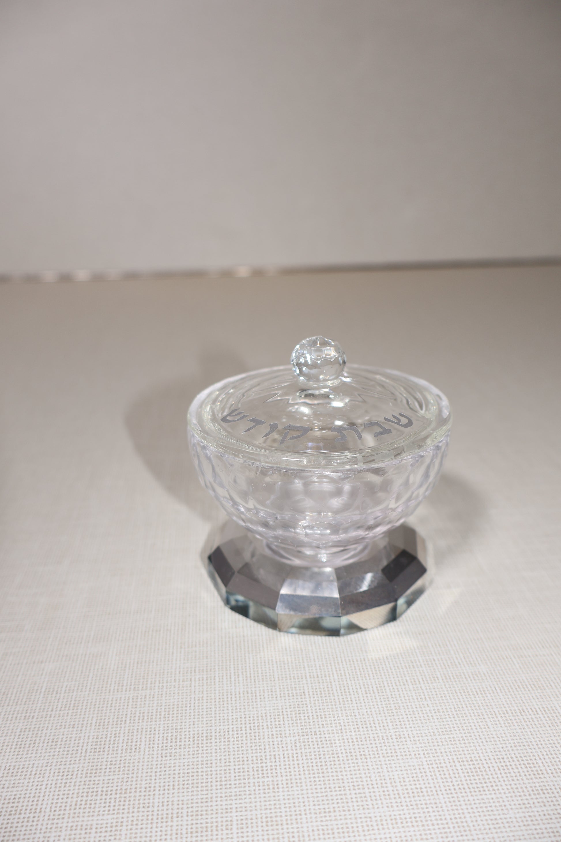 מלחיית קריסטל שקוף- דגם חלק וחריטת ״שבת קודש״